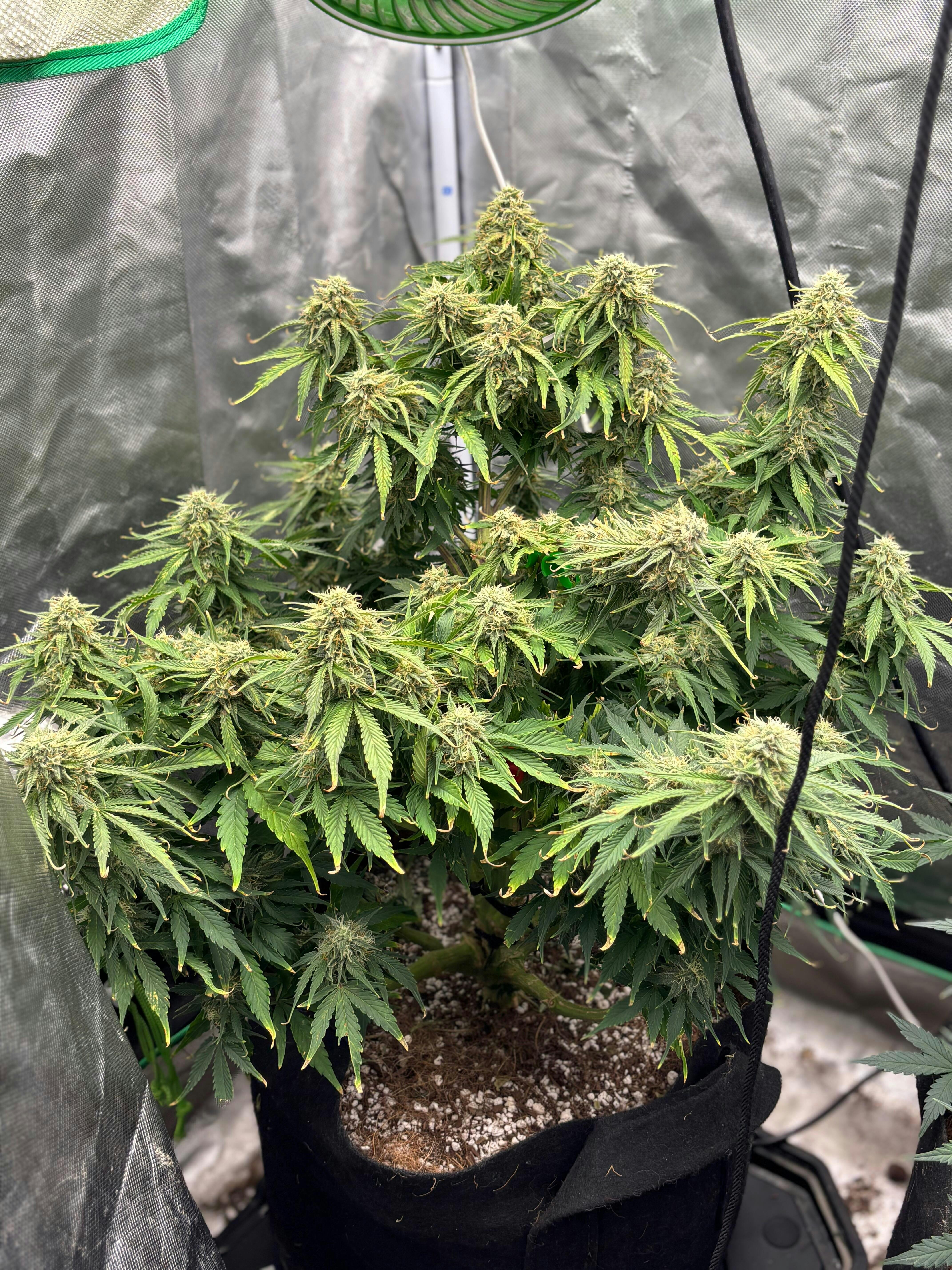 Nybörjarodlare kan förvänta sig att skörda 90 gram per planta, vilket lätt kan uppnås under kallare månader. Mogna växter kommer att ha en huvudcentral cola som är omgiven av tjocka och stora avkastande sidogrenar. Det finns en stor mängd högkvalitativt sockerblad som produceras runt de kraftigt frostat knopparna.